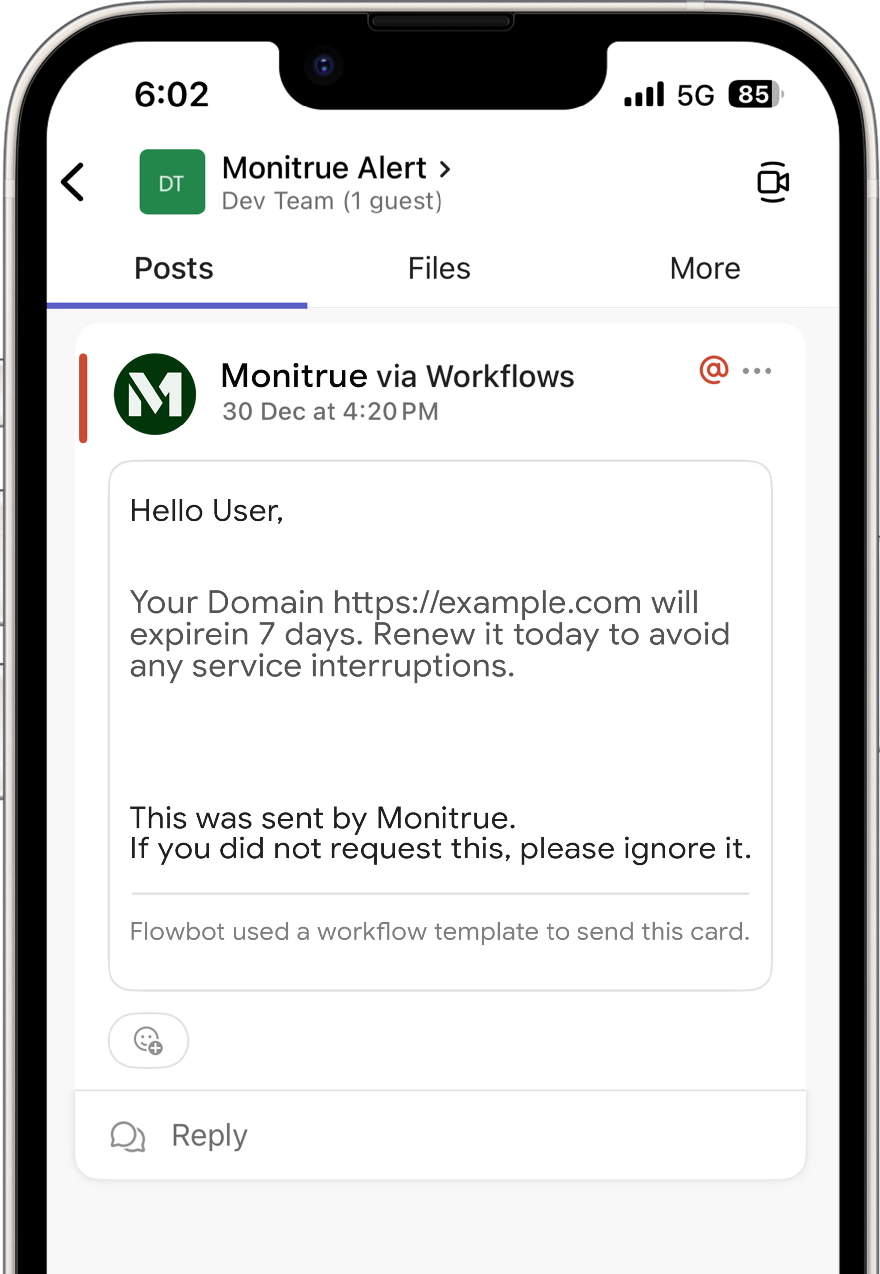Receive domain reminders through the tools your team already uses, so important updates never get missed.