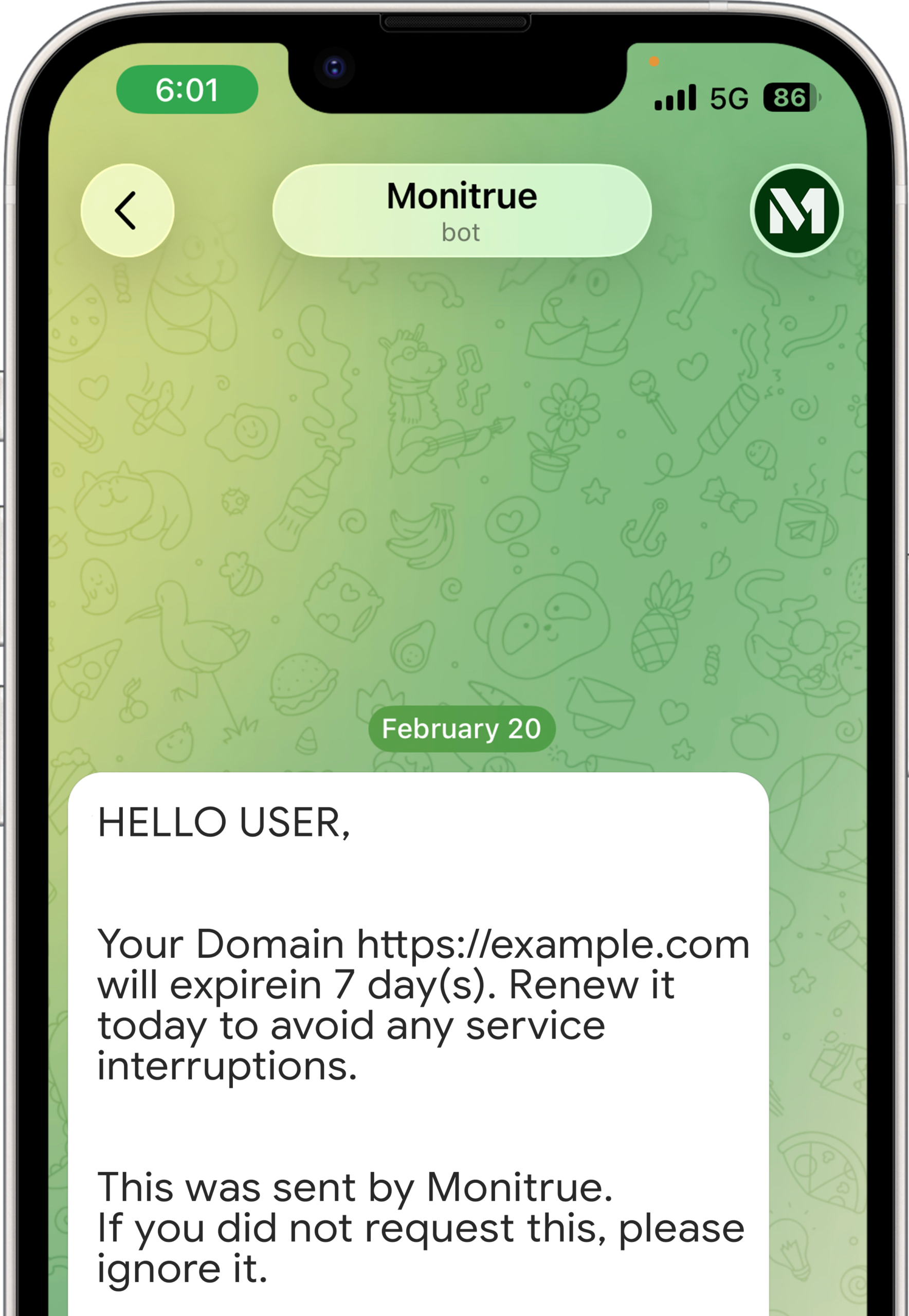Instant alerts in your Telegram chats.